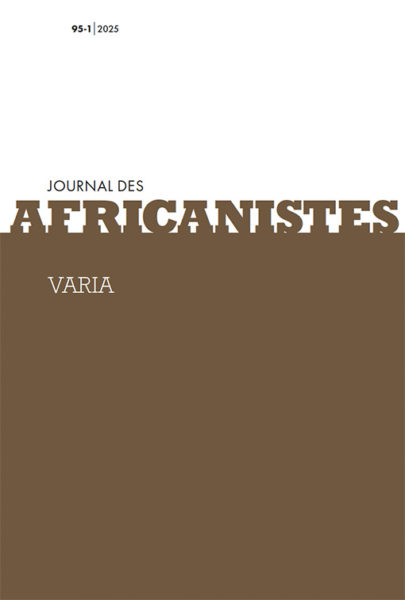Journal des africanistes. Tome 95 - fascicule 1. 2025. Varia Publié en octobre 2025. pages. ISBN : 9782908948608. Journal des africanistes. Disponible - Prix : 20 € Être membre de la Société des Africanistes vaut abonnement à la revue. Ont participé à ce numéro : Elisabeth Rossé, Kitanha Sosthène Touré, Julien Volper. JA-95_1_Couverture ImprimerFacebookTwitter